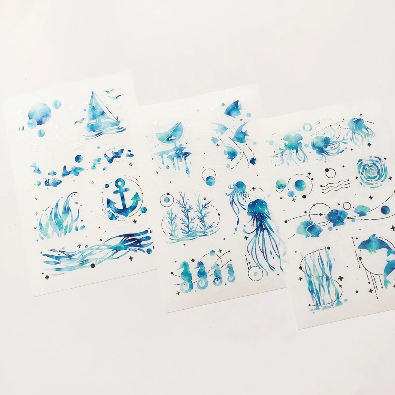 Name: Pegatinas de papel con diseño de Océano Azul y estrellas, decoración de cuentas de mano, pegatina decorativa para cuaderno, 3 hojas